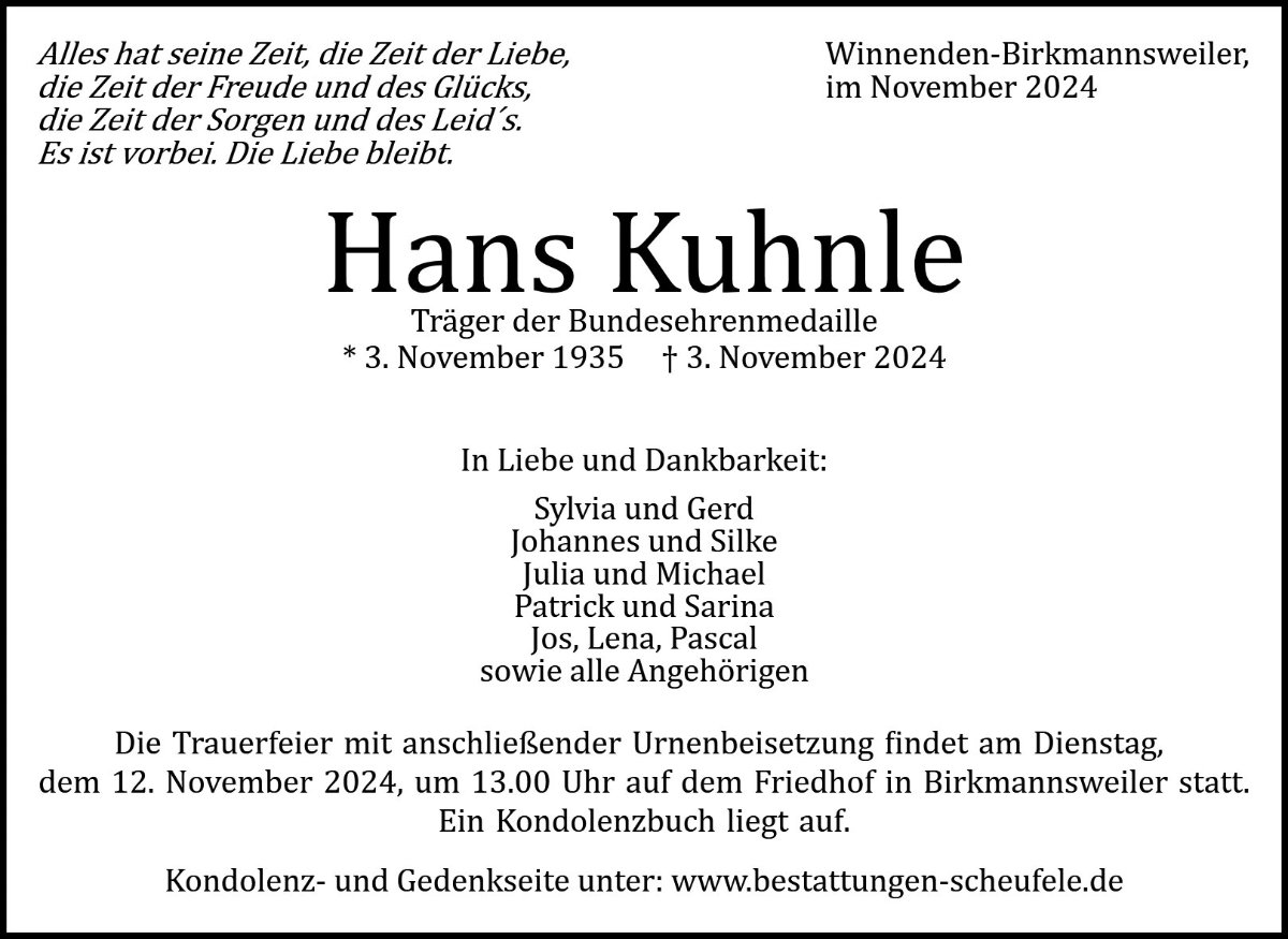 Lieber Hans, mit viel Liebe, Mühe und Zeit hast du unsere Familienchronik aufgearbeitet und damit etwas besonderes für deine Nachkommen geleistet. Für dein unvergleichliches Engagement danken wir dir und behalten dich in liebevoller Erinnerung.
