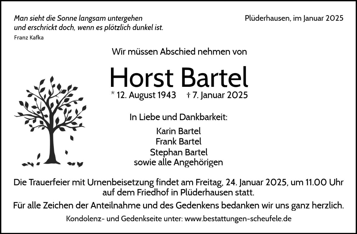 Horst Bartelgestorben am 7. Januar 2025