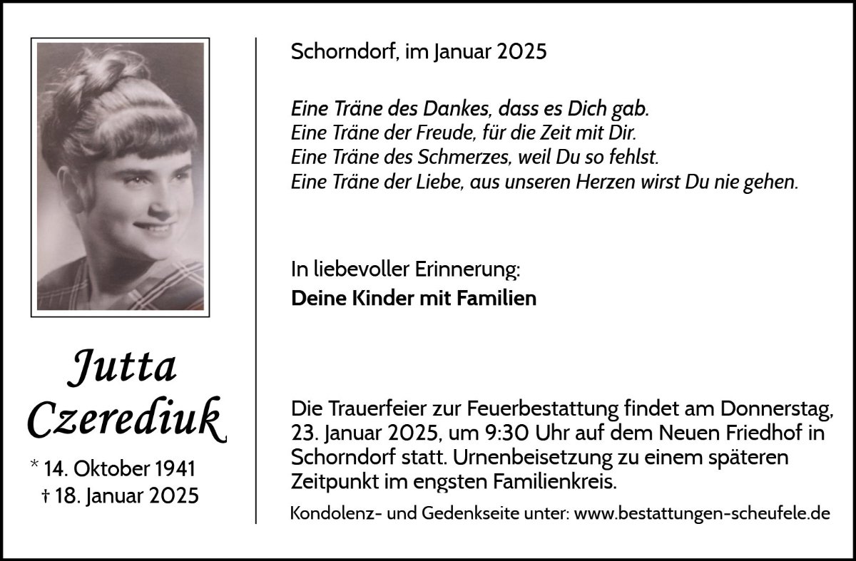 wir wünschen Ihnen von Herzen viel Kraft, dass Sie Menschen um sich haben, die Ihnen in dieser schweren Zeit beistehen und Halt geben. Zusätzlich können Sie auf dieser Gedenkseite Erinnerungen teilen und so das Andenken gemeinsam wachhalten.